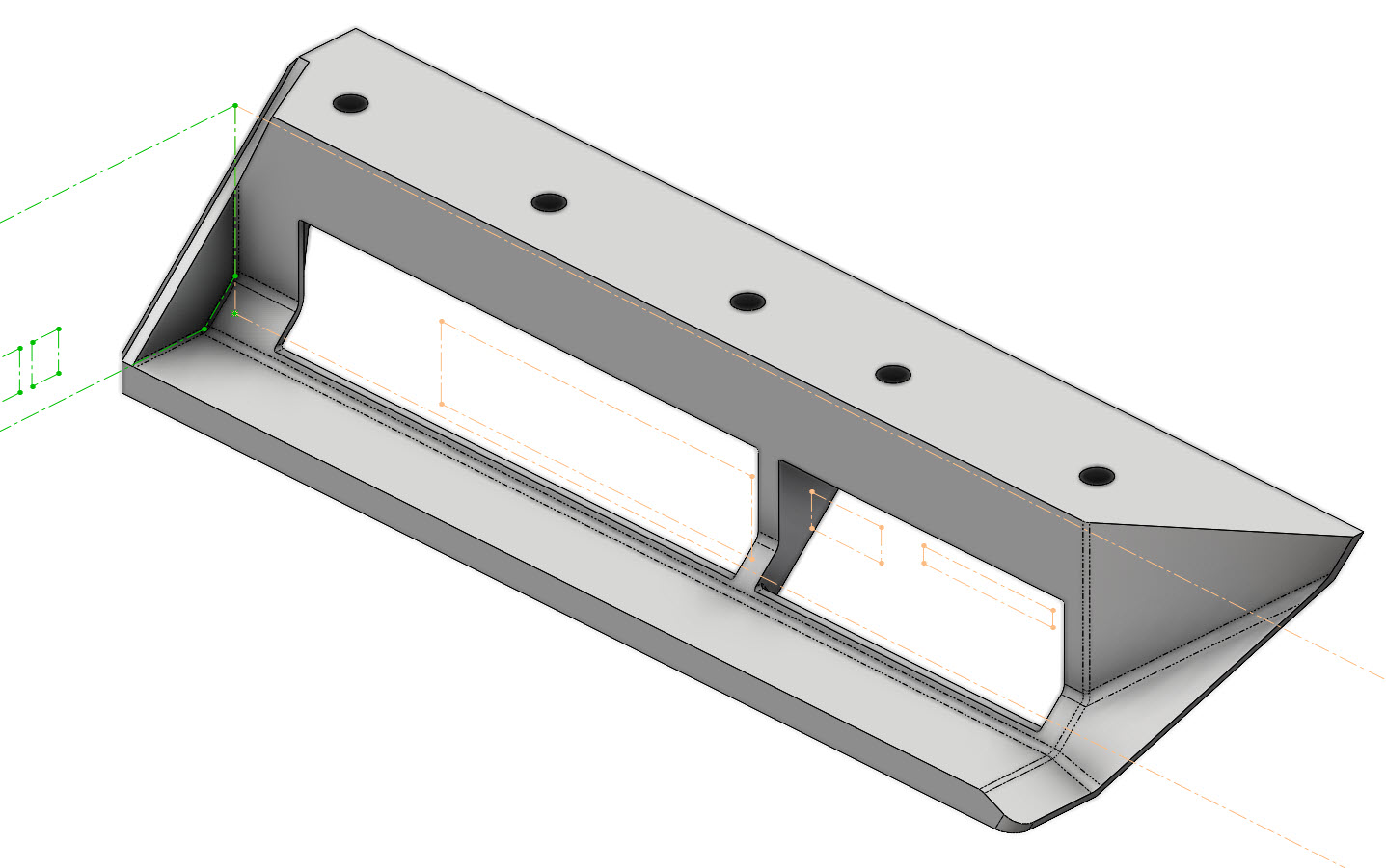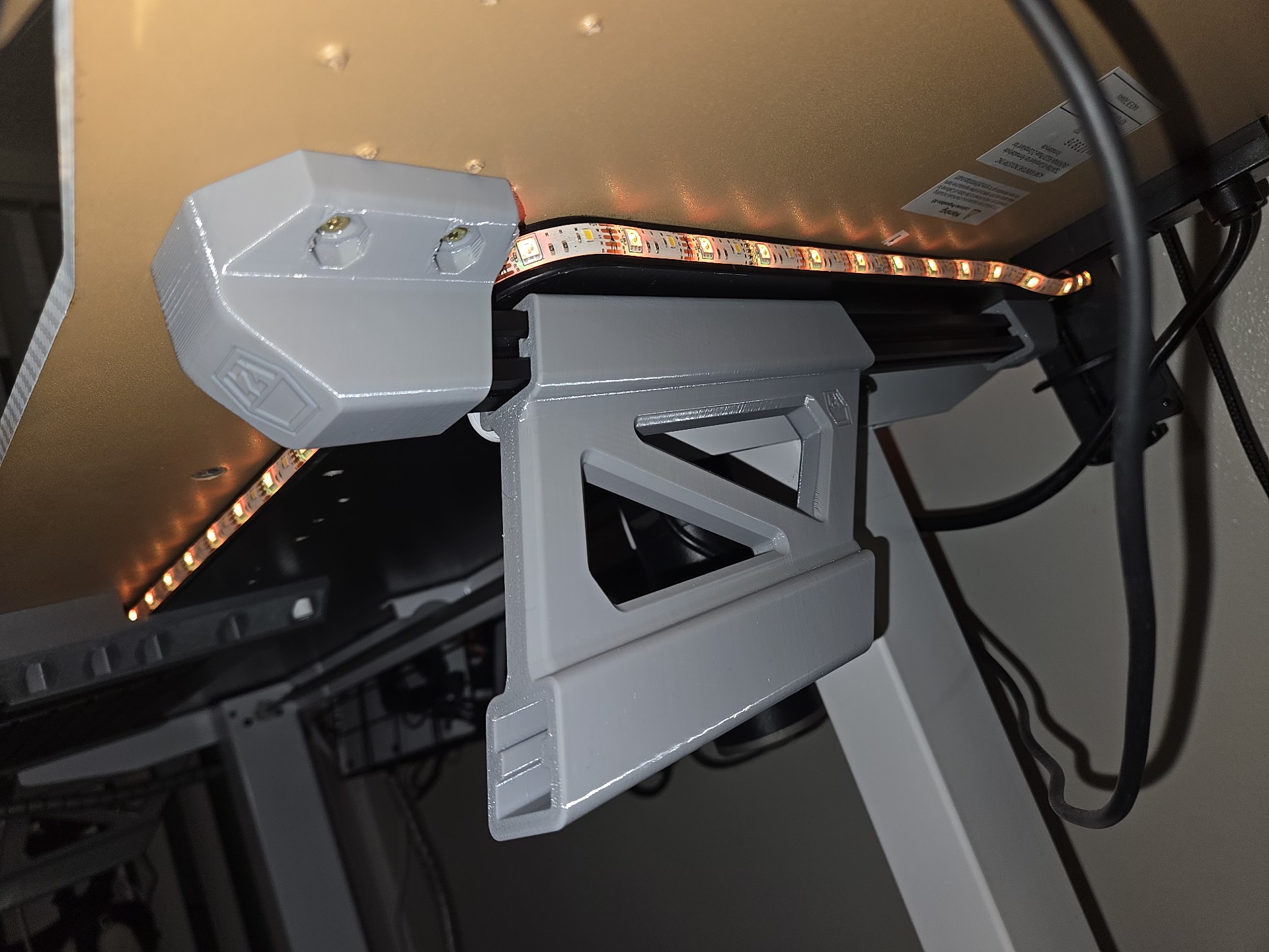 So this is a bracket set that allows a laptop to be mounted under a shelf or the desk. It has an inner bevel that mimics these laptops side profile, and yes, while I could have designed another L-bracket, I wanted to design something unique and specific where FDM (fused deposition modeling) manufacturing would shine. It also allows access to ports and ventilation plus easy insertion.