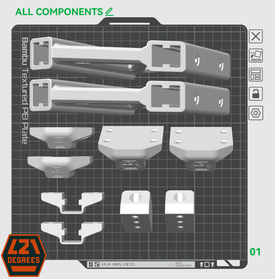 Designed in SolidWorks for Makers, printed with a Creality Ender 3 V2 printer with custom 1st Layer firmware and board.