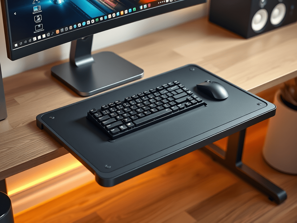 Listing: https://www.printables.com/model/1144913-keyboard-megashelf-sliding-keyboard-and-peripheral