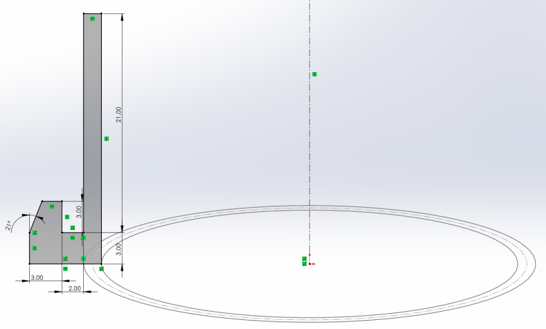 I usually start by sketching and sometimes modeling the reference material, in this case it would be the fixed tube and the new stand tubing but it was supposed to be something quick so I sketched the outer diameter + clearance of the fixed tube and the inner diameter plus clearance of the new stand tubing to use as reference for the cross-section.