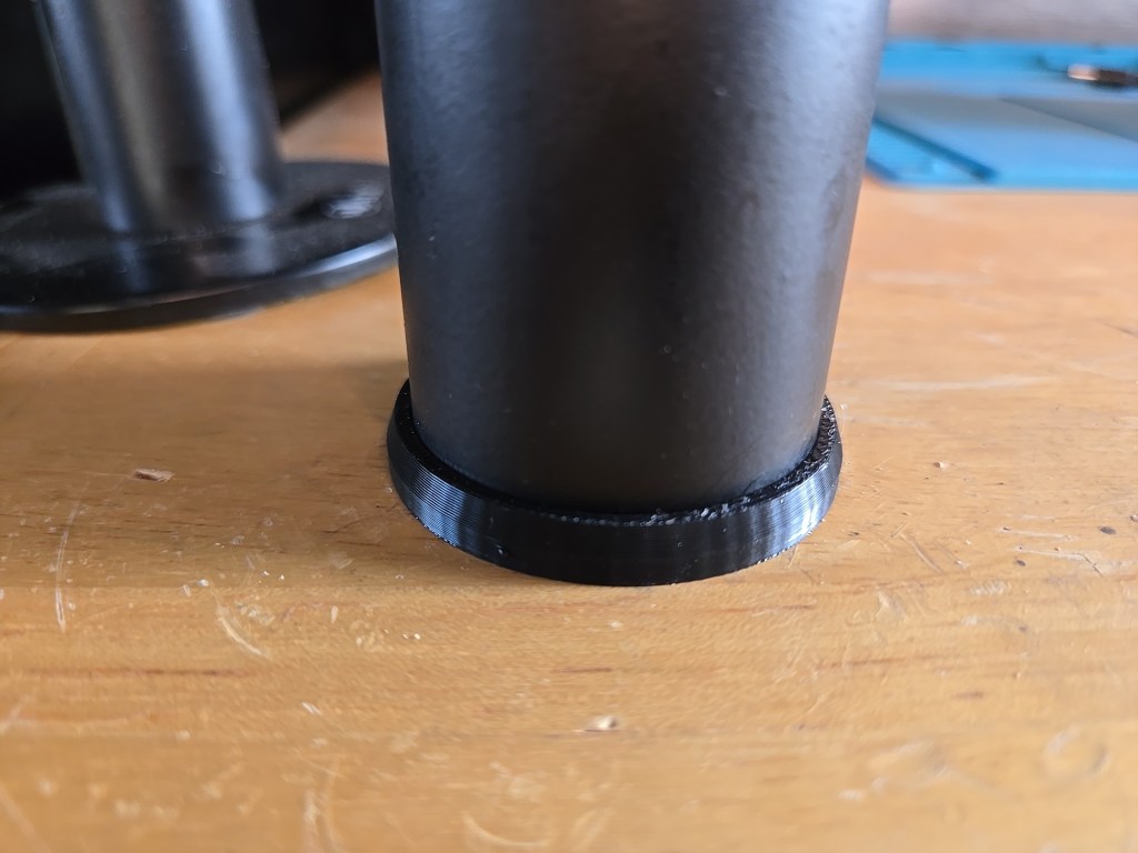 And this is it, I reduced outside material on the cap to reduce friction from the stand. For testing, I printed small sections of each (about 6mm) to quickly test fit and kept tweaking the first sketch until I got a good press-fit for the fixed tube and a slip-fit for the new stand.