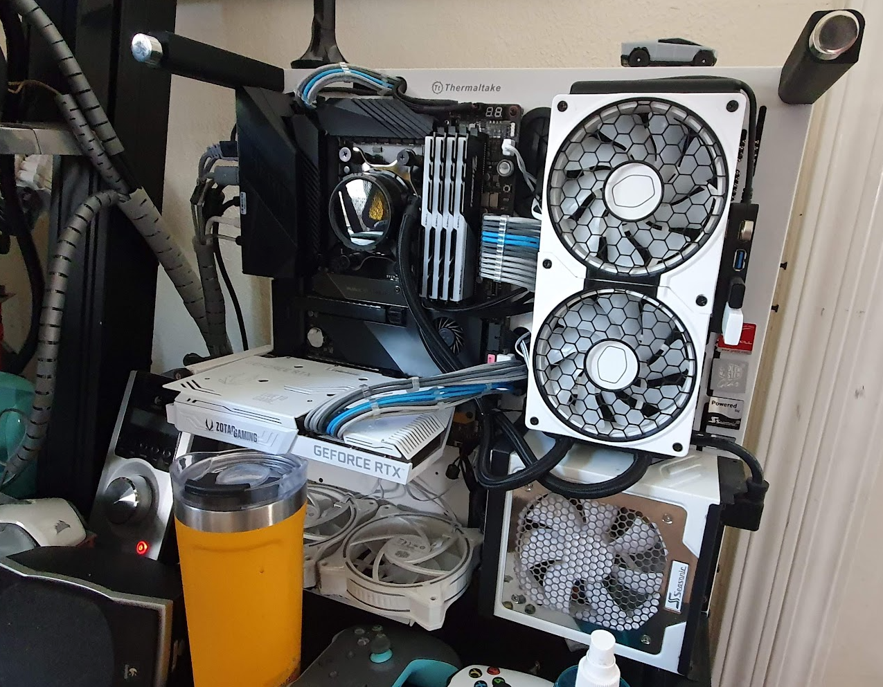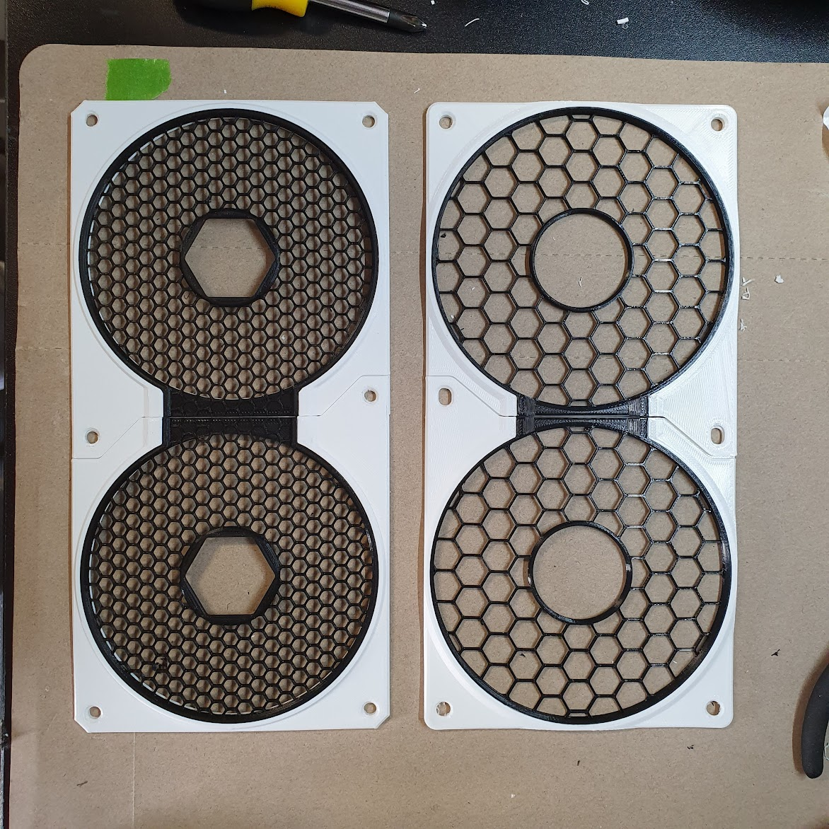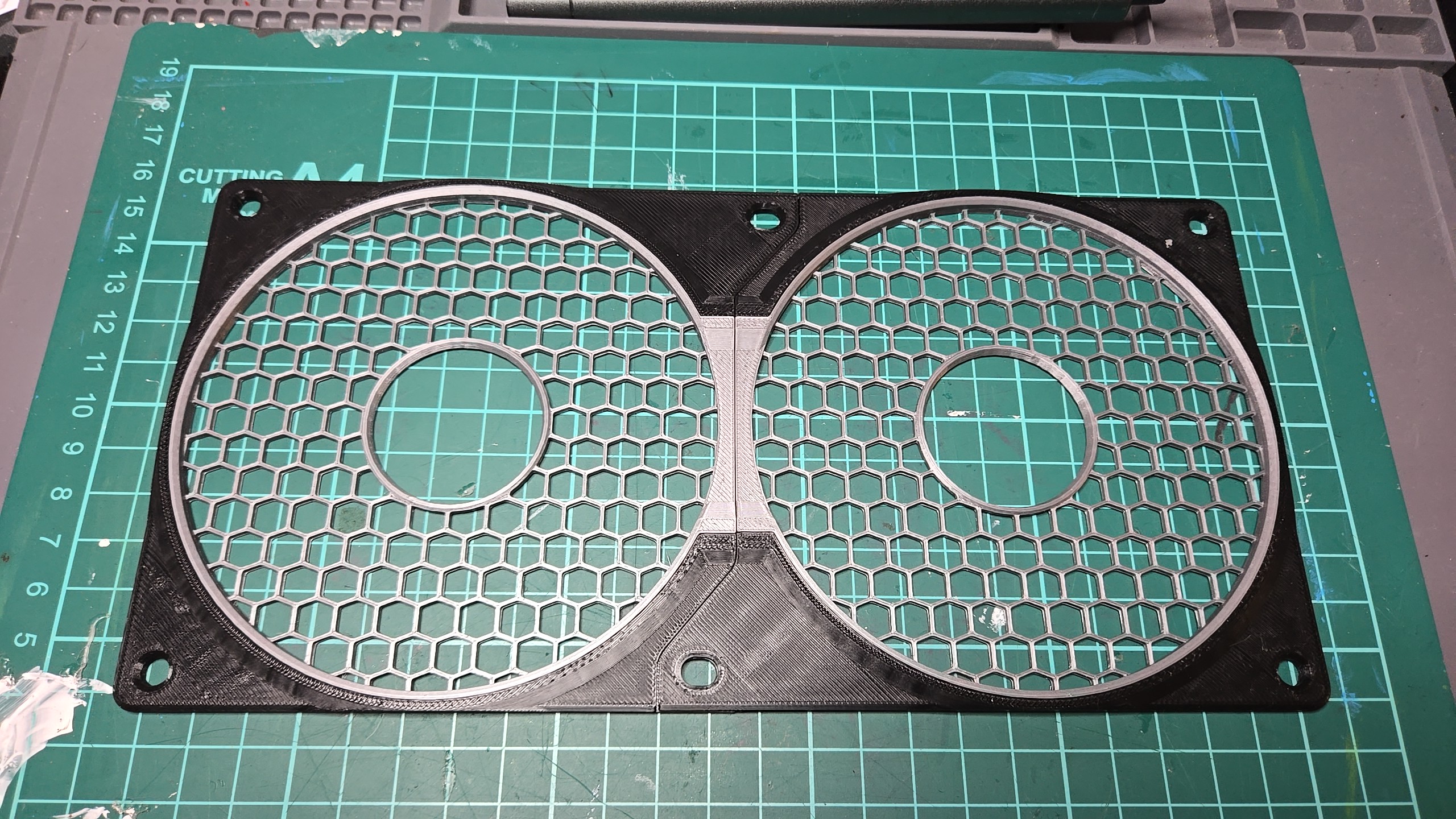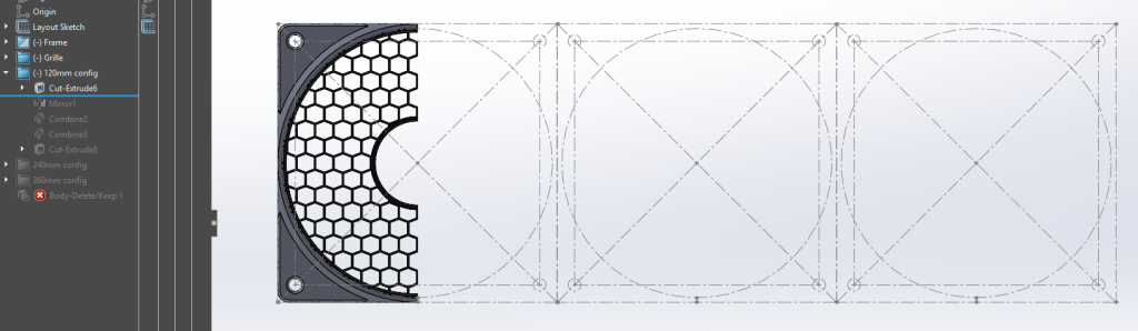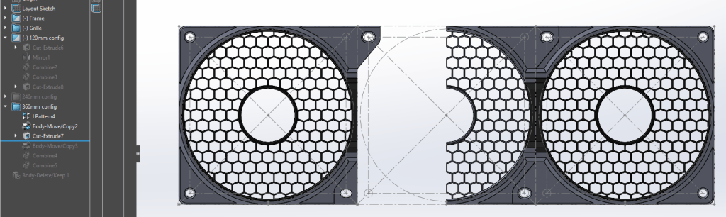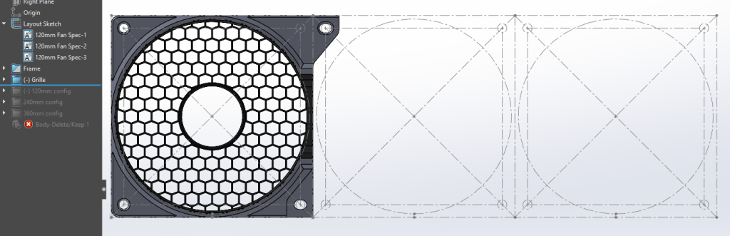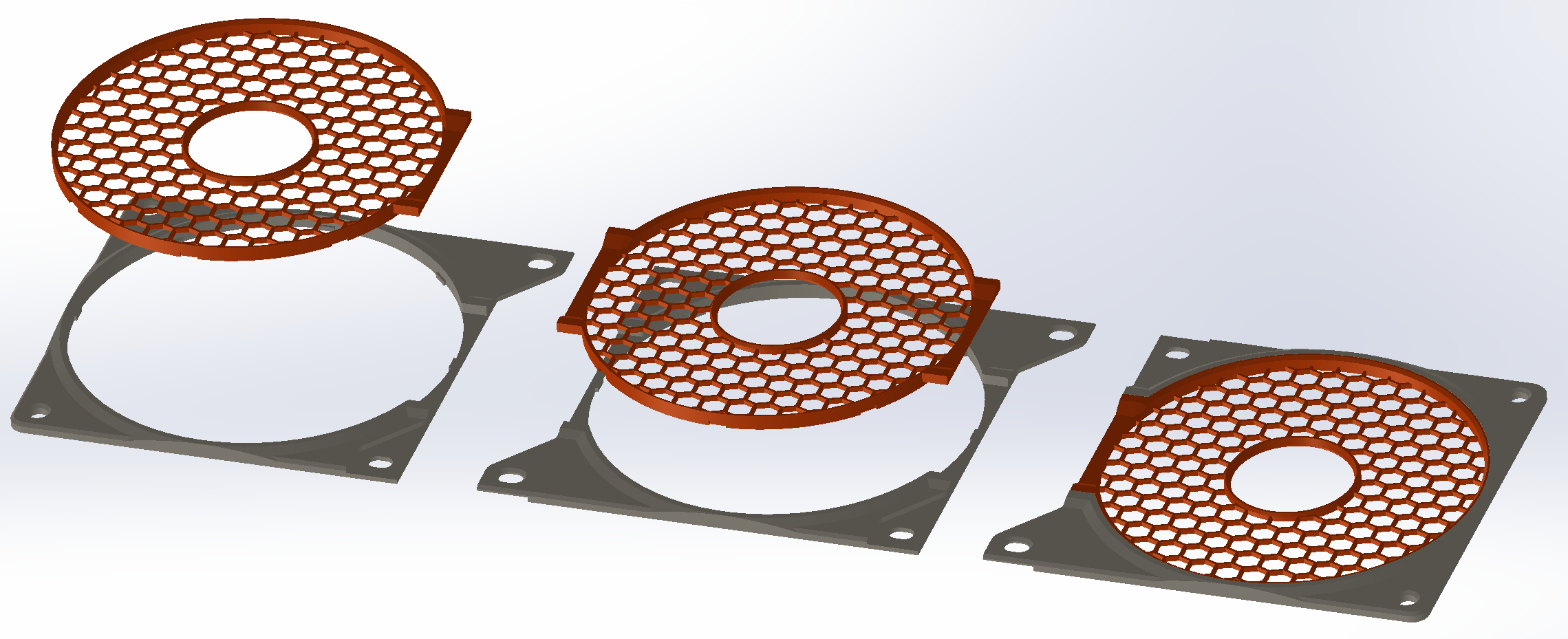 I’m really proud of this product, the grille snaps-in to the frame and this mounts straight over the computer fan and/or radiator. If one ever wants to change the grille design and/or color, it’s just a matter of pulling it out and place another one in without any other disassembly which can be very tricky specially inside computer cases.